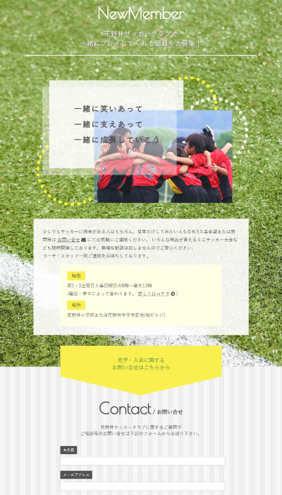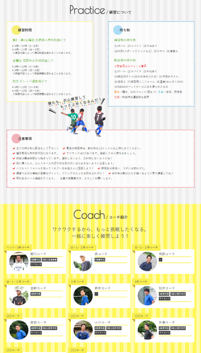 少年サッカークラブのサイトリニューアルを企画からデザイン、マークアップまで一貫して担当しました。子どもやお母さん方に向けて、可愛らしく、クラブの楽しい雰囲気が伝わる仕上がりを意識してデザインしました。